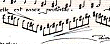 Die Graphik des Notenbildes ahmt die Hauptlinien der Zeichnungen nach: